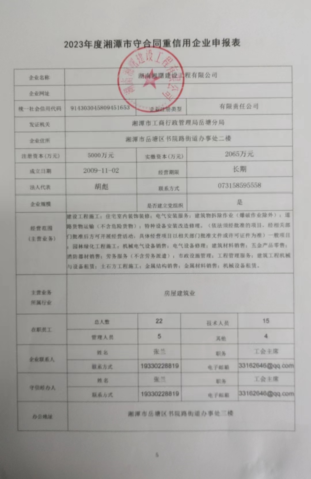 本企業(yè)根據(jù)《湘潭市守合同重信用企業(yè)申報規(guī)定》等編制 2023 年度企業(yè)信用報告書,并保證本報告書內(nèi)容真實、準確、完整。