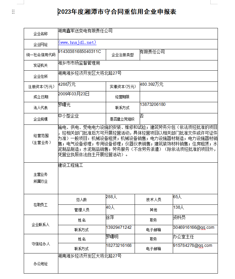 本企業(yè)根據(jù)《湘潭市守合同重信用企業(yè)申報(bào)規(guī)定》等編制 2023 年度企業(yè)信用報(bào)告書(shū),并保證本報(bào)告書(shū)內(nèi)容真實(shí)、準(zhǔn)確、完整。